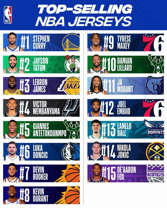 Every year in the NBA, players "face" each other in terms of who's jersey is the most sold. Usually these players are the main stars of the entire league, and to be in the top spot of jersey's sales is in a certain way, being the actual image of the Association. For this season, there are a couple of surprises among the top 15.
